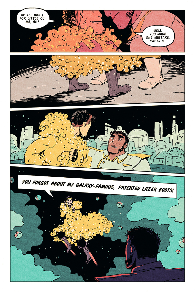 Captain Shihab Imani is a much-beloved, highly decorated starship captain whose efforts to capture his arch nemesis, the roguish smuggler Silo “Lazerboots” Haze, have consumed much of his career. With the help of his alien lieutenant, Via Auriga, Imani pursues Silo across the galaxy - but theirs is a strange, obsessive chase, motivated as much by frustrated desire and longing as it is justice.